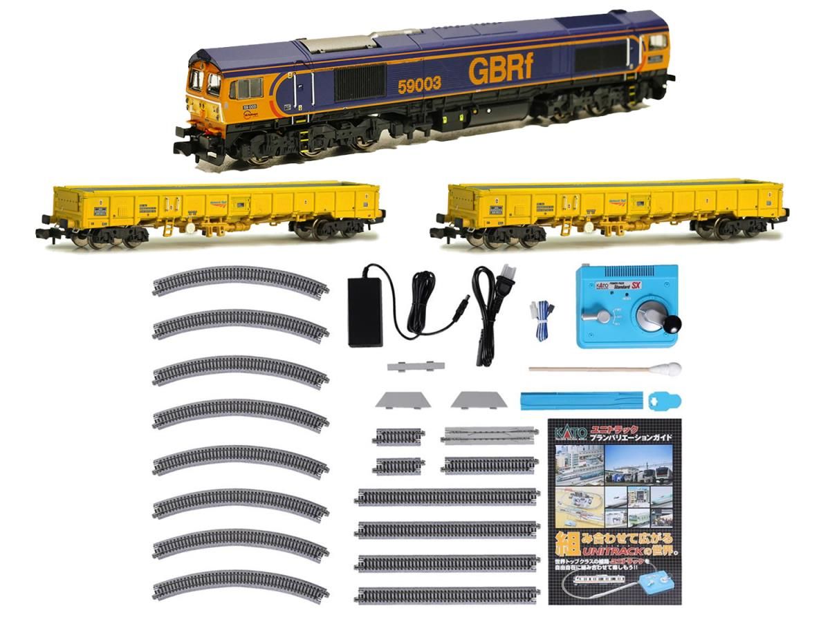 This set features the only Class 59 in GB Railfreight colours accompanied by two JNA Ballast wagons in Network Rail's distinctive yellow livery. It includes an oval of the Kato UNITRACK which can be easily clipped together on a table and taken apart. It also includes a easy to use controller which comes with a UK Transformer. It's everything you need to get started in Modern Image N Gauge.