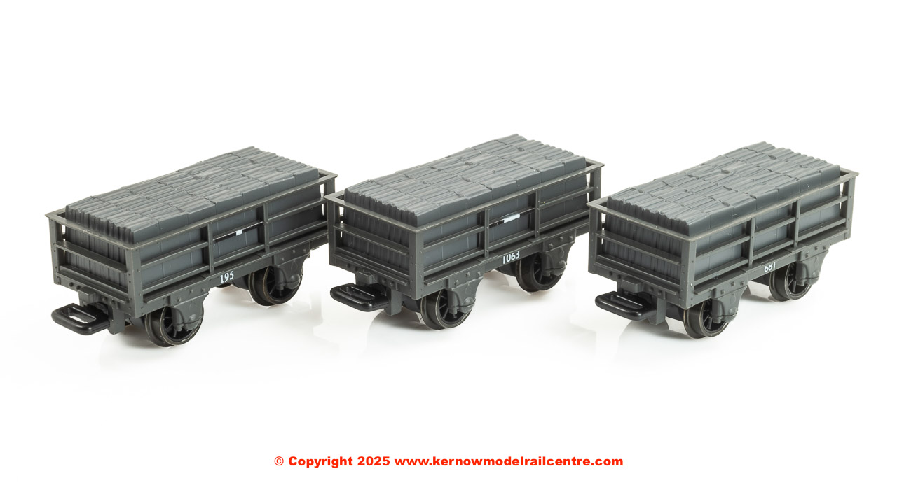 Each wagon carries its own specific markings and running number. The sets are made up with a random selection of running numbers. Each wagon is fitted with a removable slate load, which is conveniently hollow, thus giving the modeller the added option of including some further weight if required.