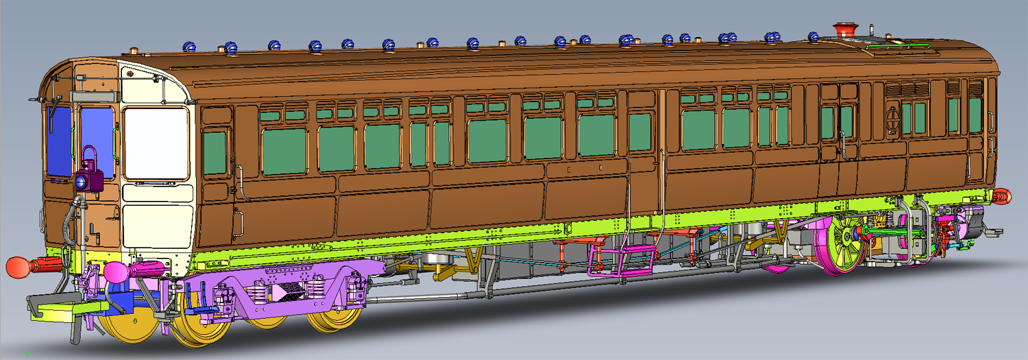 We have received what the final CADs for our GWR Steam Railmotor project. The tooling will allow for both the Diagram ‘O’ type and the Diagram ‘R’ type Steam Railmotors to be produced The most obvious differences between the diagram O and the diagram ‘R’ are the larger boiler room windows, double leaf passenger doors and ‘Fishbelly’ rather than ‘Equalising’ bogies. The CADs illustrated below had a couple of final ammendments before we approived the to ebable tooling to commence.
