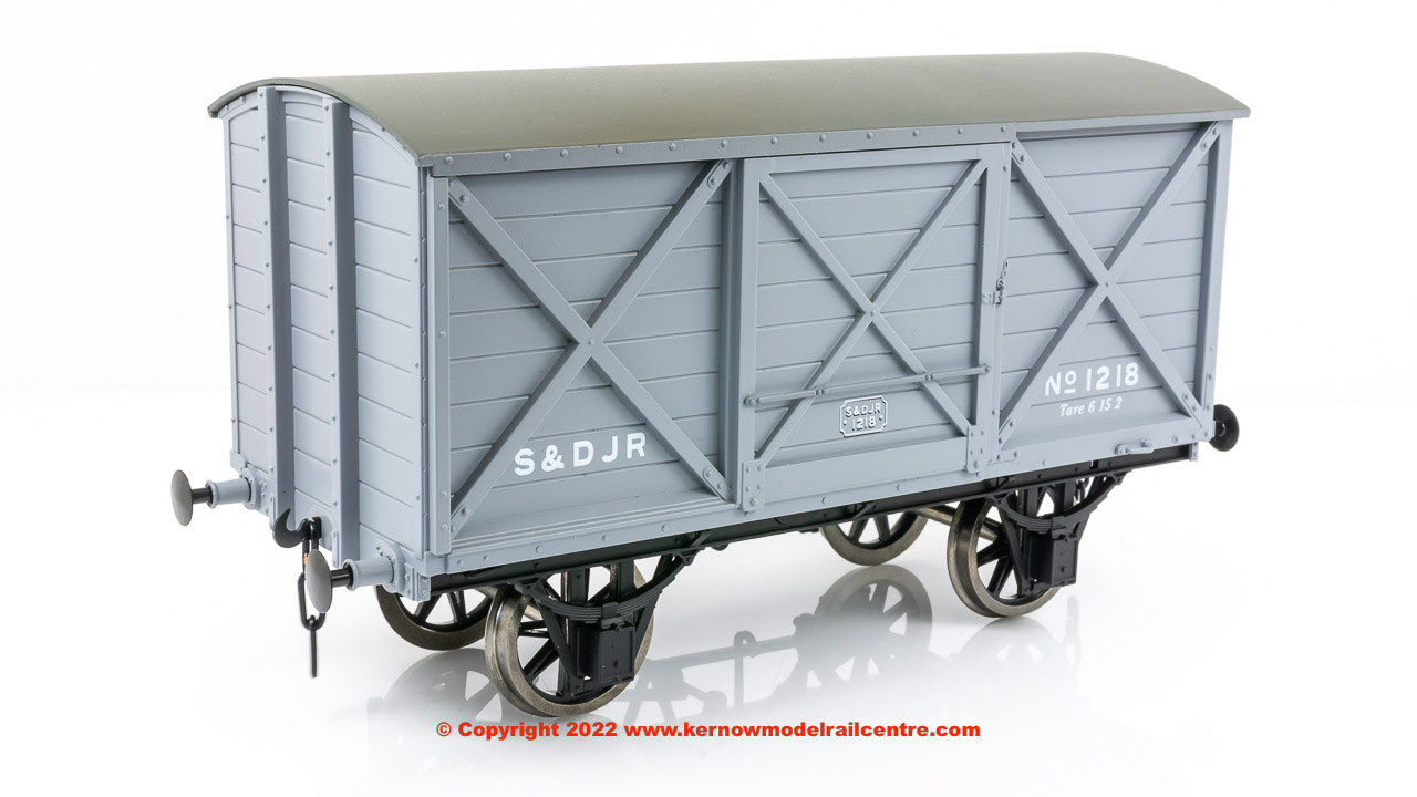 K7010D LSWR D1410 Covered Van with 8 1/2" end planking, no end vents, Panter axleboxes, 8 open spoked wheels, and single side brakes in SDJR Grey livery number 1218