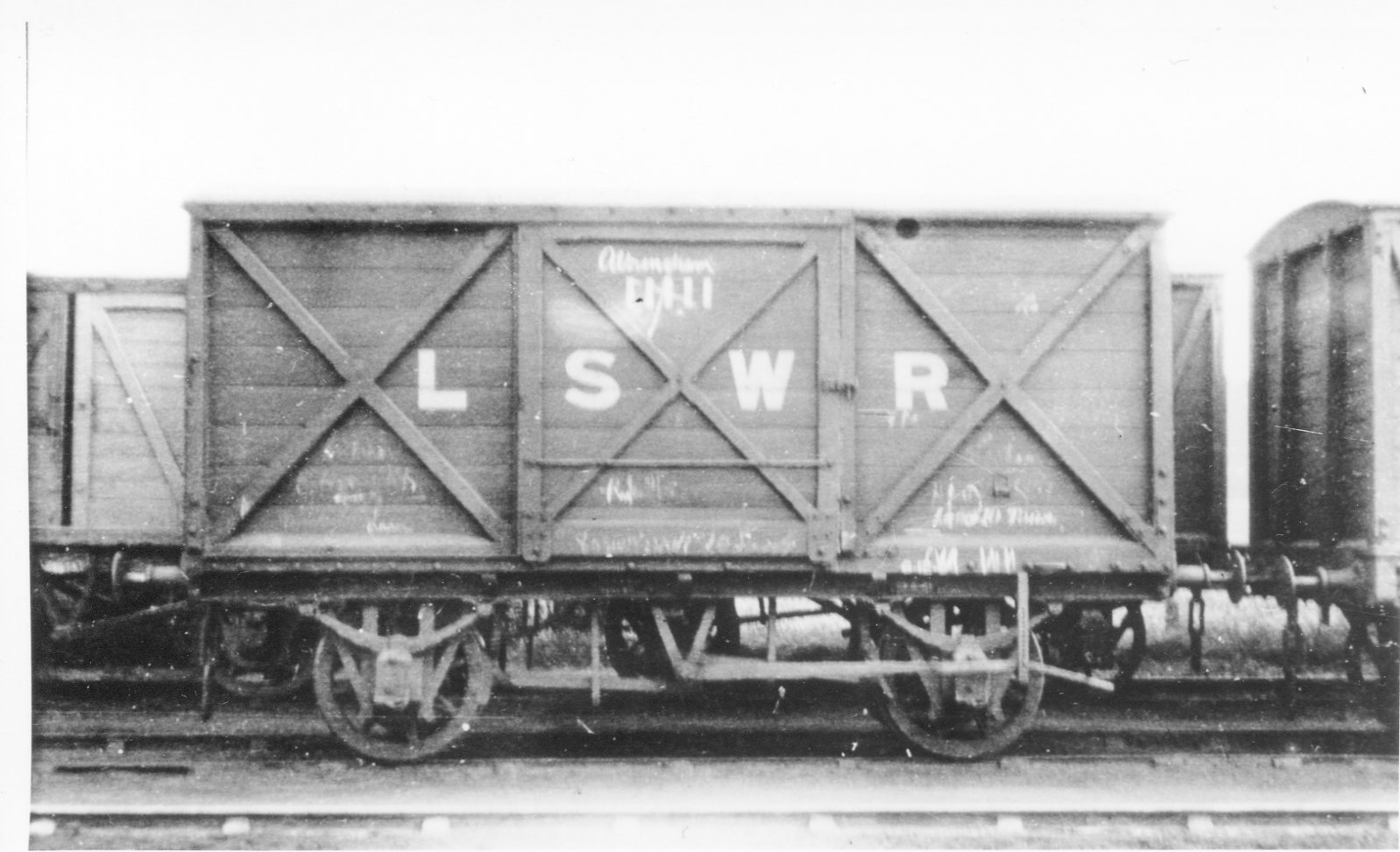 Ten covered vans to the Diagram 1410 were built for the Somerset & Dorset Joint Railway (S&DJR) they differed from the LSWR versions as they did not have the end vents and only single sided brakes. They later were absorbed into SR stock and had end vents fitted, become identical to D1410 vans.